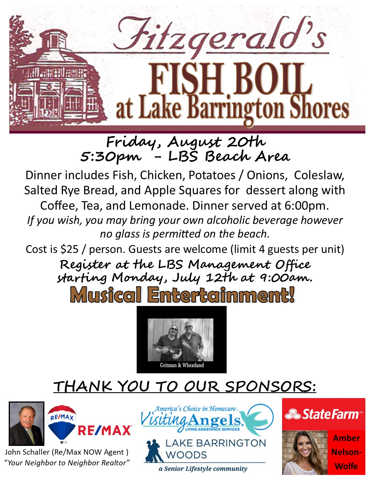 « All Events This event has passed. LBS Fish Boil August 20, 2021 @ 5:30 pm - 8:00 pm « Pickle Ball Pickle Ball » Add to calendar Google Calendar iCalendar Outlook 365 Outlook Live Details Date: August 20, 2021 Time: 5:30 pm - 8:00 pm Event Categories: Featured, Special Event